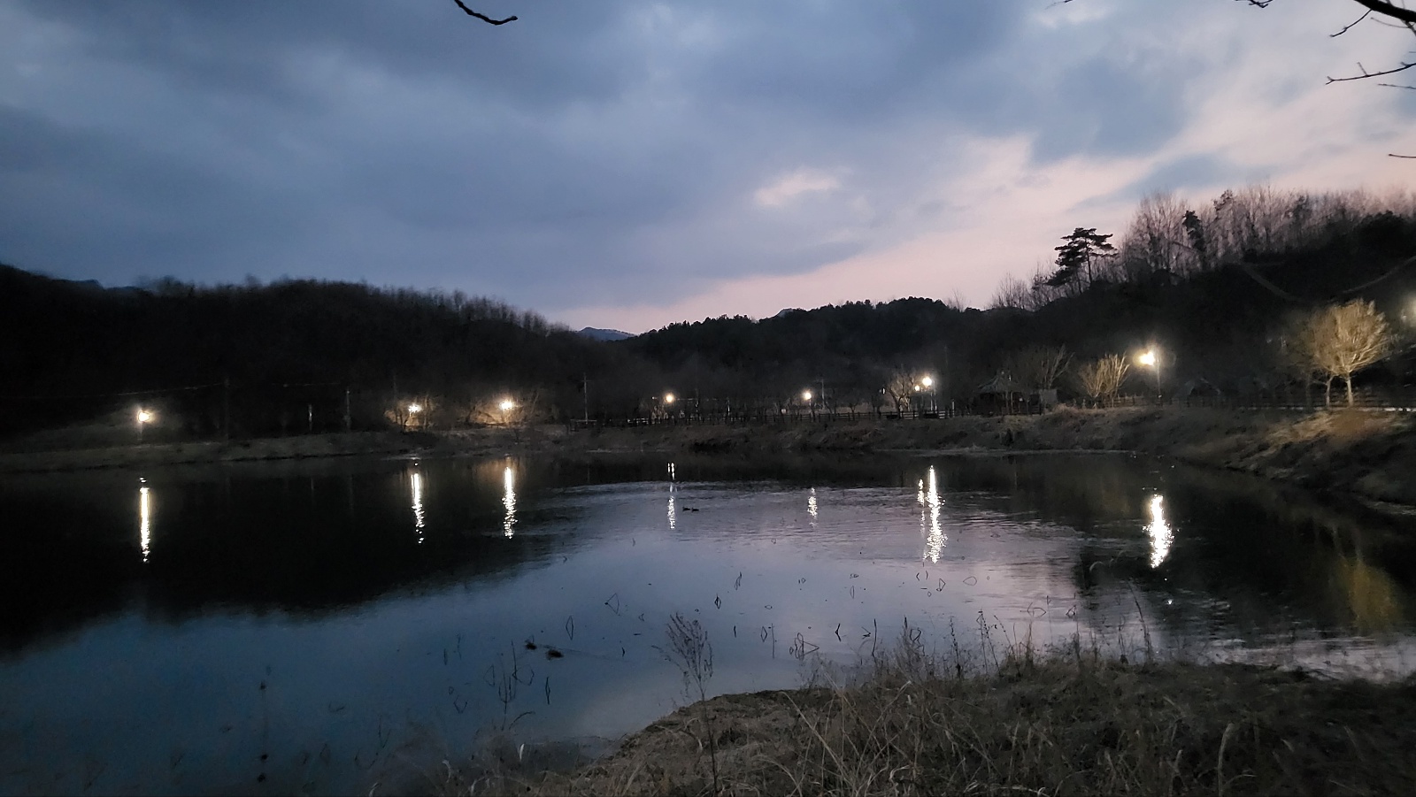 제가 사는 곳은 아인리인데요, 저희 집에서 2분 정도만 걸어가면 상지말 저수지라는 작은 저수지에 도착합니다.