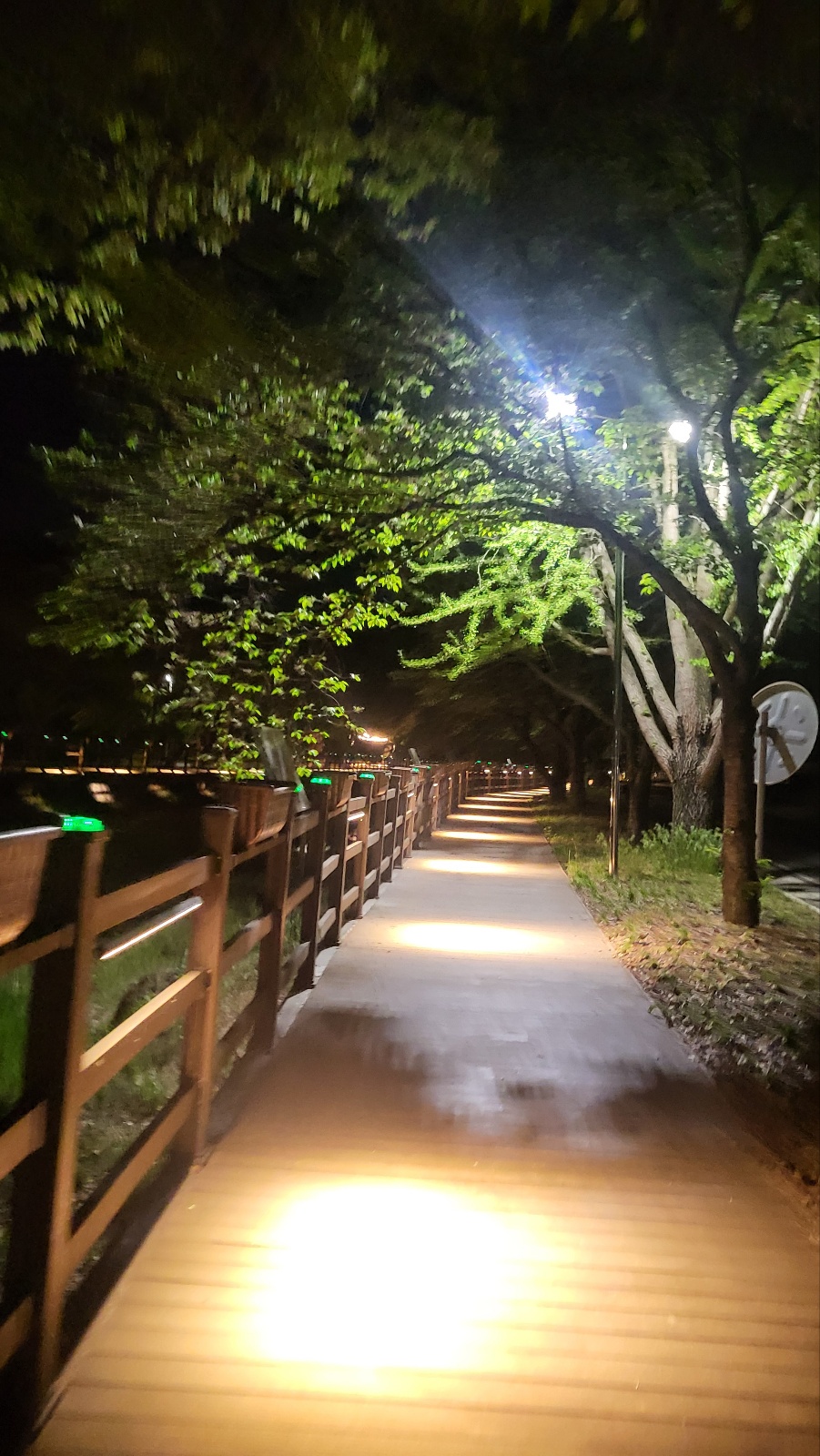 이 데크길은 e편한프라임포레 정문 앞에서 출발하여 남이면 쪽으로 걸어가다가 데크길이 끝나는 곳(양지교)에서 턴하여 돌아오고 e편한 정문을 지나 상류교까지 와서 다시 턴하면 정문까지 왔을 때 4000보 정도 걸을 수 있습니다. ^^